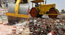 ഗുജറാത്തില് ബുള്ഡോസര് കയറ്റി 100 ലക്ഷം രൂപയുടെ മദ്യ കുപ്പികള് പൊട്ടിച്ചു