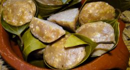 വയണയില അപ്പം / കുമ്പിളപ്പം / തെരളി അപ്പം അരിപൊടി(വറുത്തത് ) – 2 കപ്പ് ശര്ക്കര (ചീകിയത്) –