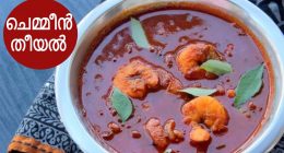 ചെമ്മീന് (കൊഞ്ചു) തീയല് 1. ചെമ്മീന് വൃത്തിയാക്കിയത് – 250 ഗ്രാം 2. കുഞ്ഞുള്ളി – 100 ഗ്രാം (വട്ടത്തില്