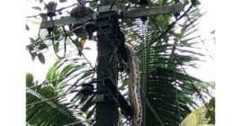 വൈദ്യുത പോസ്റ്റില് കയറിയ പെരുമ്ബാമ്ബ് ഷോക്കടിച്ചു ചത്തു