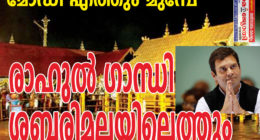 ന്യൂഡെല്ഹി : രാഹുല്ഗാന്ധി കോണ്ഗ്രസ് അധ്യക്ഷനായി ചുമതയേറ്റതിന് ശേഷം കേരളത്തിലെത്തുന്ന രാഹുല്ഗാന്ധി ശബരിമലയില് ദര്ശനം നടത്തിയേക്കുമെന്ന് വിശ്വസ്ത കേന്ദ്രങ്ങളില് നിന്നും