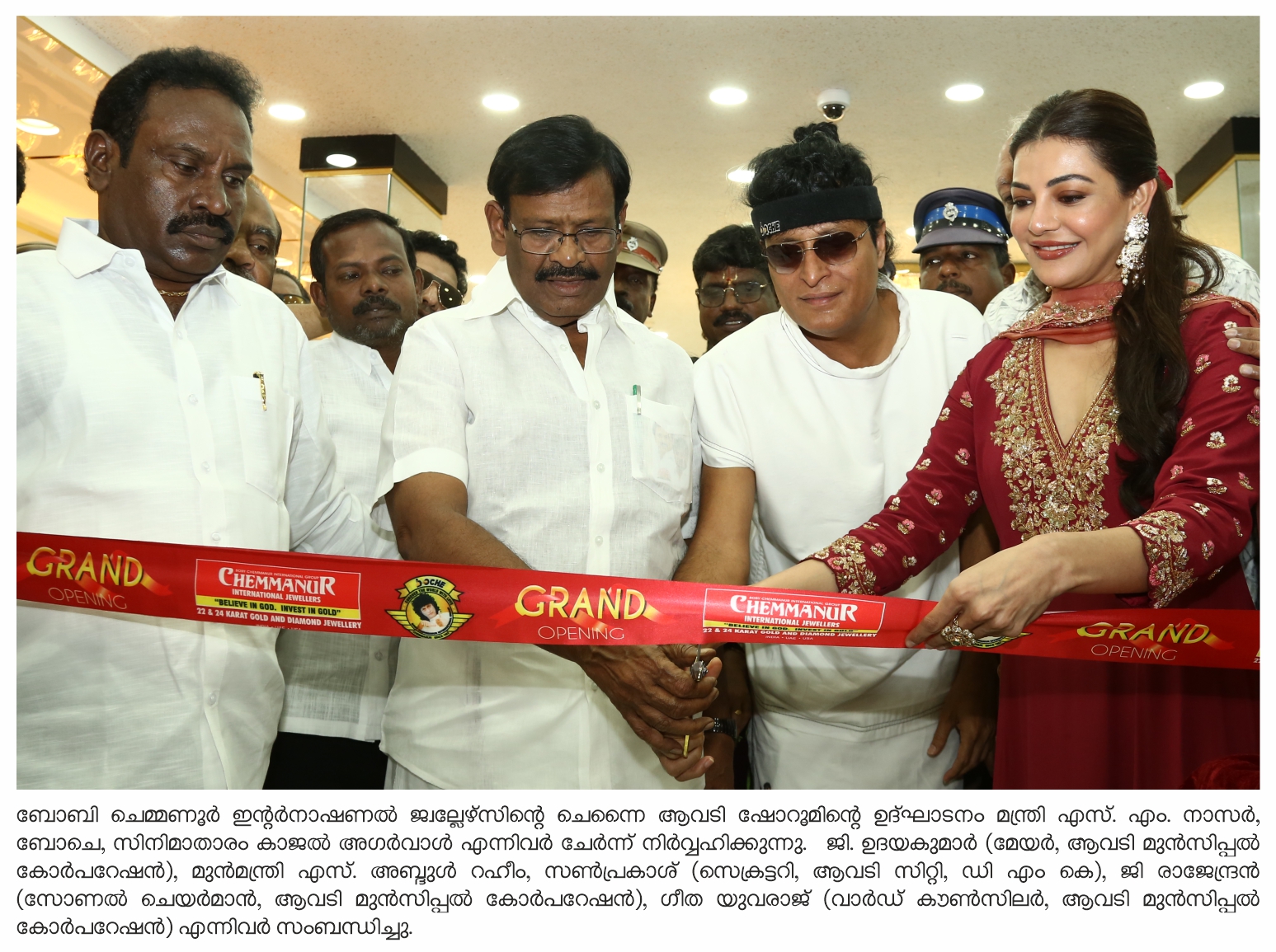 ഒക്ടോബര് 4 ശനിയാഴ്ച രാവിലെ 10.30 ന്, എസ് എം നാസര് (Minister of Minorities Welfare, Non-Resident Tamils Welfare, Refugees & Evacuees and Wakf Board, Government of Tamil Nadu), ബോചെ (812Km. Run Unique World Record Holder & Guinness Record: World Peace), സിനിമാതാരം കാജല് അഗര്വാള് എന്നിവര് ചേര്ന്ന് ഷോറൂം ഉദ്ഘാടനം ചെയ്തു. സ്വര്ണാഭരണങ്ങളുടെ ആദ്യ വില്പ്പന ജി ഉദയകുമാര്(മേയര്, ആവടി മുന്സിപ്പല് കോര്പറേഷന്) നിര്വ്വഹിച്ചു.